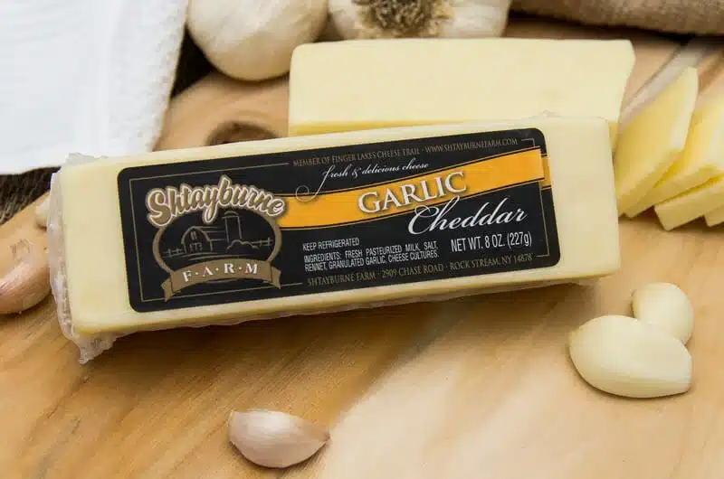 Farm fresh pasteurized milk, salt, rennet, granulated garlic, cheese cultures.