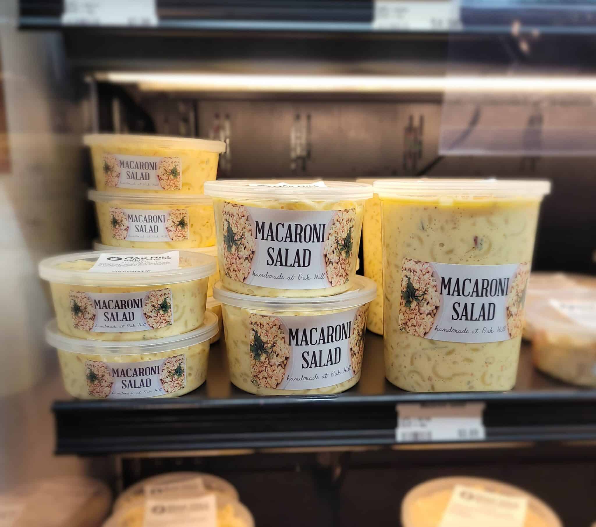 Ingredients: macaroni, mayonnaise, egg, evaporated can juice, dextrose, onion, sea salt, carrots, onion powder, white vinegar powder, mustard, celery, citric acid, red and green sweet bell peppers, celery seeds, guar gum, soybean oil, extractives of turmeric, black pepper, ascorbic acid (vitamin C).